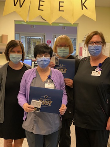 Awards and Recognition at Horizon Horizon awards and recognition programs celebrate employees and physicians who embed our values in their work and use their passion to help people be healthy through innovation and leadership. Every year, we recognize the extraordinary achievements and contributions of Horizon employees and physicians. We recognize achievements in all areas – from clinical, community, leadership, quality, safety, development and more. We also acknowledge and award employees and physicians for their longstanding service at Horizon and celebrate retirement as an important milestone. We are proud to share these outstanding accomplishments from across Horizon! Say Bravo! to a Horizon Employee Years of Service and Retirement Quality Quest Awards Patient Safety Hero Awards Awards of Distinction in Nursing Awards of Distinction in Professional Services Leadership Development Awards Want to thank a Horizon employee for the exceptional care they provided to you or your family? Say Bravo! Bravo!, Horizon’s employee recognition program was launched in 2016, and since then, more than 100,000 Bravo! nominations have been shared! Bravo! provides an opportunity for patients and family members to say thank you for quality care and for Horizon staff and physicians to recognize the excellence of their colleagues. You can send a Bravo! to a Horizon employee, physician, or volunteer by visiting HorizonBravo.ca. You submit the message you’d like to share, and we’ll take it from there! Each Bravo! brings three moments of positivity. An employee, physician, volunteer or student will be recognized for their excellent work, a manager will get to make someone’s day by sharing the Bravo! with them, and you’ll feel great knowing all of this will happen! Taking the time to acknowledge exceptional care, a moment of kindness when you needed it most, or the valuable impact someone had on your health care experience is meaningful. Share your positive experience today at HorizonBravo.ca. COVID-19 prevented us from celebrating this year’s 2,000+ Years of Service recipients in person, but managers and department heads took time to recognize those across Horizon celebrating milestones ranging from five to 50 years of service. Congratulations to all! This is deferred for 2023. However, applications are still being accepted for the 2024 awards. The annual Patient Safety Hero Awards are presented to one individual and one team within Horizon who exemplify commitment to patient safety, innovative practice, collaborative spirit, and patient-centredness in their daily work. 2023 Recipients There are two categories for this award, individual and team. Individual: Gillian Gillies, Clinical Director Ambulatory Care & Oncology and Stephanie Scheffelmaier Nurse Manager Ambulatory Care & Endoscopy, Dr. Everett Chalmers Regional Hospital Gillian demonstrates commitment to patient-centered care while maintaining conscientious attention to the culture of patient safety. “Gillian is very patient focused in every decision she makes as a leader. As a former patient representative, she takes to heart any concerns brought to her attention with great care. She has come in on many weekends and evenings to spend time with families, enhance communication with care teams, and to support/problem solve with the after-hours team members.” (Nominator). Stephanie’s partnerships and open communication demonstrate her collaborative spirit and approach towards a culture of patient safety. “Stephanie makes Patient Safety the cornerstone of her practice with a compassionate approach and ensures her staff lead in the same selfless actions. She is attentive to best practice and if she ever questions concern of patient safety around processes, procedures, or complex cases, she consults with Nursing Practice, her peers, other Managers, and the Quality Team.” (Nominator). Team: Centre Noreen Richard Team In using reflexive practice, the Centre Noreen Richard Team routinely questions what they can do to minimize harm or improve future actions to unforeseen events. While recognizing the importance of patient safety measures, they ensure incidents are reported to analyze and improve future risks, recommendations are made when there’s an opportunity for improvement and communicate directly with their patients and families following incidents to offer support, compassion and to provide feedback on actions taken. Leadership development is an ongoing journey of learning, reflection and application. As a learning organization, we encourage continuous learning and provide opportunities for growth through our programs, workshops, and e‑learning. Each year one participant from the Leading One Horizon and Cornerstone programs are selected by their peers to receive an “Outstanding Leader Award”. The recipients will have positively contributed to the learning environment and consistently demonstrated Horizon’s leadership competencies. The Spring 2024 recipients are: